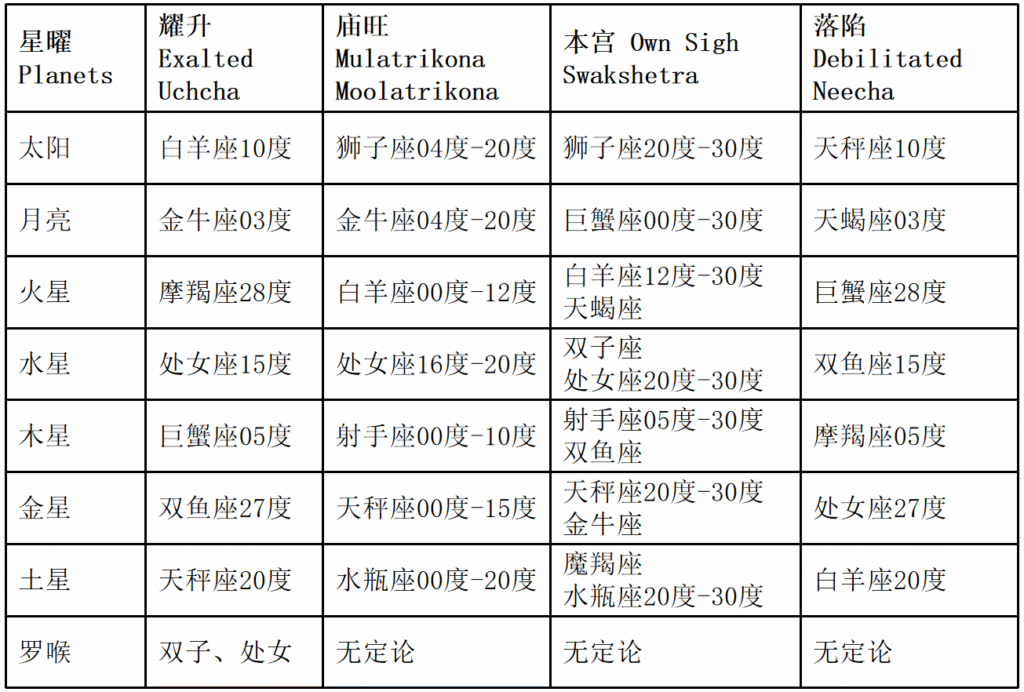 行星与星座的关系表